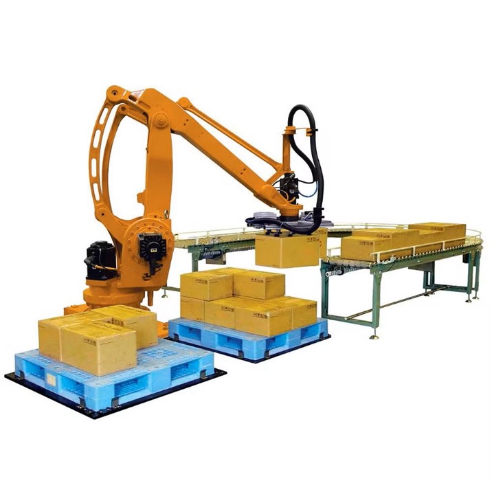 A bottle palletizing robot system is an automated solution designed to efficiently stack and organize bottles onto pallets for storage or transportation. These systems utilize advanced robotics, sensors, and programmable software to handle bottles of various shapes and sizes with precision. Equipped with grippers, suction mechanisms, or specialized end effectors, the robot ensures accurate placement while minimizing the risk of damage. Ideal for industries such as beverage, pharmaceutical, and cosmetics.
